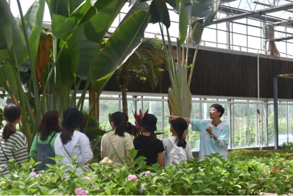 参观完校史馆后,新生们在我院2018级园艺专业同学的带领下,参观了攀西特色植物及现代农业馆。他们为新生们做了详细的讲解,其中包括:富含神秘果素,食用后吃酸性食物会变甜的神秘果、树干上开花结果的嘉宝果、加拿利海枣、面包树、鸡蛋花、琴叶珊瑚、颜色不一的绣球、成一片片花墙的洋凤仙等,每一株生长旺盛的植物,都向同学们体现出我院学子的勤劳与实干精神。