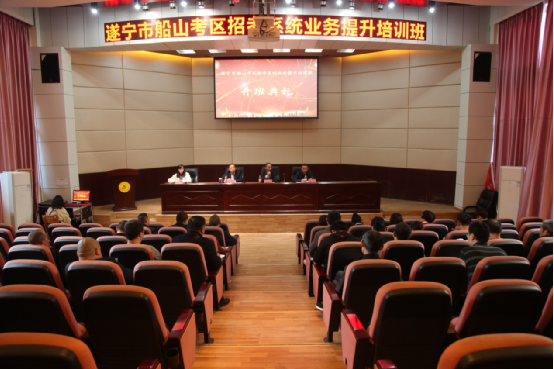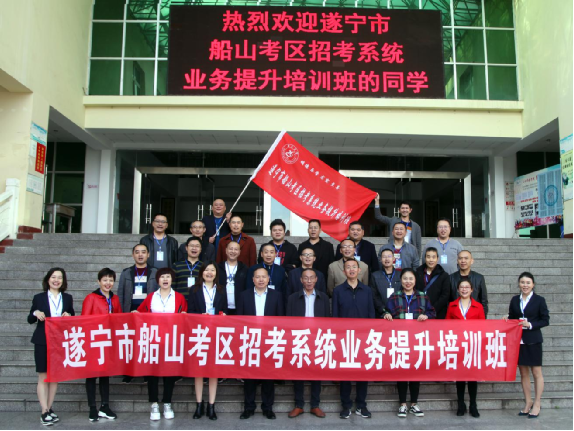 2019年11月7日上午8:30,遂宁市船山考区招考系统业务提升培训班开班典礼在西昌学院南校区教师教育学院学术报告厅举行。西昌学院继续教育学院党总支书记,兼学院副院长,培训中心副主任李远军,遂宁市船山区大学中专招生委员会办公室副主任姜方全,西昌学院招生办公室主任邱勇出席了本次开班典礼。  开班典礼由西昌学院培训中心陈洪艳主持。典礼伊始,全体起立,奏唱国歌。会议在庄严肃穆的国歌声中拉开帷幕。首先,西昌学院继续教育学院党总支书记,兼学院副院长,培训中心副主任李远军向参加培训的学员表示热烈的欢迎。接着,李书记向学员们介绍了西昌学院的基本概况,李书记特别向学员们提到今年西昌学院八十周年校庆的情况,希望学员们关心、关注我校动态。李书记讲到本次培训西昌学院培训中心高度重视,精心设置课程。培训的课程内容涵盖政策理论、教育的发展趋势、心理健康等多个专题,具有较强的针对性和实效性。通过培训,希望学员们能加深对考试招生事业改革发展新形势和新任务的认识和把握,增强做好新形势下招考工作的业务水平。李书记强调本次开展招考系统业务提升培训是继续深入开展“不忘初心,牢记使命”主题教育的重要载体,是进一步贯彻主题教育学习要求,是锤炼一流招生考试干部队伍的客观需要。希望学员们提高思想认识,珍惜培训机会,切实做到学以致用、以学促改。最后,李书记对本次培训提出三点要求:一要把集中学习和个人自学相结合。二要把培训学习和推进工作相结合。三要把自身学习和辐射带动相结合。希望学员们能全身心投入本次培训学习,力争在有限的时间里取得较大的收获。真正做到学有所悟、学有所获、学有所用。  随后,遂宁市船山区大学中专招生委员会办公室副主任姜方全发表了讲话。姜主任对西昌学院精心组织、安排的本次培训以及授课的专家表示衷心的感谢,同时向大家介绍了本次前来培训的学员构成情况。姜主任讲到招考工作与高考密不可分,与2020年的高考息息相关,大家责任重大。姜主任强调本次培训是“不忘初心,牢记使命”主题教育的一次升华,学员们要立足岗位,认真学习,开拓眼界,鼓足干劲,学有所思,学有所成。最后,姜主任针对本次培训提出了几点要求:一是要强化学习意识。学员们要认真学习,深入领会,把握精髓,不断增强学习的主动性和自学性。二要强化组织纪律。学员们要服从培训安排,认真听讲,遵守培训纪律,积极参与集体活动。三要强化安全,确保培训顺利。“平安学习,平安培训”是本次培训的前提和保证,希望学员们树立安全意识。  接着,西昌学院招生办公室主任邱勇向学员们介绍了西昌学院的招生情况和热门专业。邱主任提到,希望加强与遂宁市船山考区招考系统的联系与合作,欢迎各校组织学生来我校参观、学习。同时,邱主任表示我校非常愿意组织专家前往遂宁船山考区召开讲座、培训以及指导学生高考填报志愿,希望今后有机会能够组织专家、教师去遂宁交流学习。最后,西昌学院继续教育学院党总支书记,兼学院副院长,培训中心副主任李远军向遂宁市船山考区招考系统业务提升培训班的学员代表王毅授旗,开班典礼圆满结束。   本次培训旨在增强招考工作人员的党性修养,提高招考工作人员的业务能力。希望学员们通过培训在认知水平、理论素养、业务能力等方面有所提高。学员们能够把学到的知识逐步应用到实践中去,提高工作效率。把本次学习的收获转化为今后工作的成果,推动招考工作取得更好的成效。最后预祝培训圆满成功,学员们在西昌学院学习生活愉快,学有所成!  |