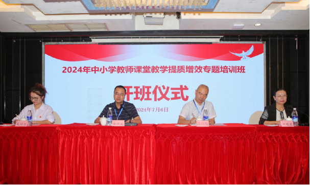 2024年7月6日,“2024年中小学教师课堂教学提质增效专题培训班”在西昌学院顺利开班。西昌学院继续教育学院副院长、培训中心副主任邓明英、成都市新都区柏水学校党总支书记谢邦成、成都市新都区竹友中学校长温昌俊以及所有参训学员参加了本次开班仪式。  邓明英对各位参训学员表示热烈欢迎,并介绍了西昌学院的办学情况以及特色优势,同时对学员们提出三点希望:一是要坚定理想信念,做情怀深厚的“国之大者”;二是进一步提高政治站位,做学习型教师;三是树立良好的形象,为教育事业贡献力量。  谢邦成代表两所学校讲话,他首先向精心组织此次培训班的所有工作人员表示真诚的感谢。其次对所有参训教师明确了三点要求:一是充分认识此次培训的目的和意义;二是保持良好的学习心态,认真学习提升自我;三是学以致用,学用结合,积累经验,增强本领。  |