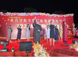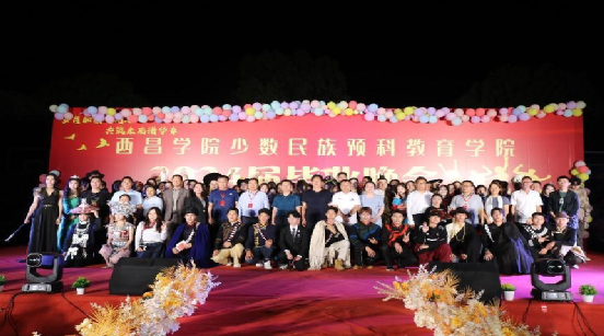笑语欢声吹响毕业号角。音乐响起,预科学子们身着少数民族传统服饰走上舞台,为观众带来一场尽显民族特色的开场秀。随后,六位主持人依次登场,分别用普通话、彝语、藏语进行主持。