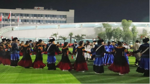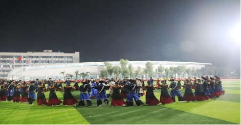 比赛中,我院80名预科学子身着彝族、藏族、蒙古族、维吾尔族等各民族传统服饰,在“铸牢中华民族共同体意识”的主题引领下,伴随悠扬的达体舞曲翩然起舞。队员们以流畅的队形变换、精准的节奏把控和饱满的情感表达,生动诠释了各族文化交融之美,展现出多元一体的中华民族风采。