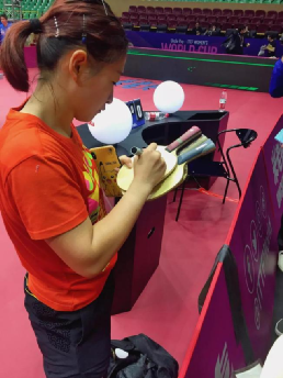 获本届比赛冠军的刘诗雯为志愿者签名 团队合作