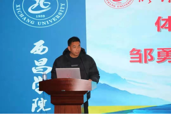 体育学院田径代表队主教练邹勇老师分享了近年的比赛与取得成绩,针对招生的起点不高等问题,提出扩大选材范围、拉长集训时间、改进训练方法等实质性建议,最后邀请同学们能积极加入田径代表队这个家庭。