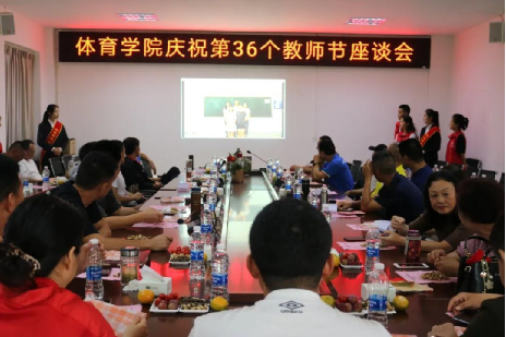 西昌学院体育学院庆祝第36个教师节座谈会于2020年9月10日16点在北校区体育馆会议室召开,会议由西昌学院体育学院副院长郎朝春主持,参加会议的有西昌学院体育学院全体在校教师。