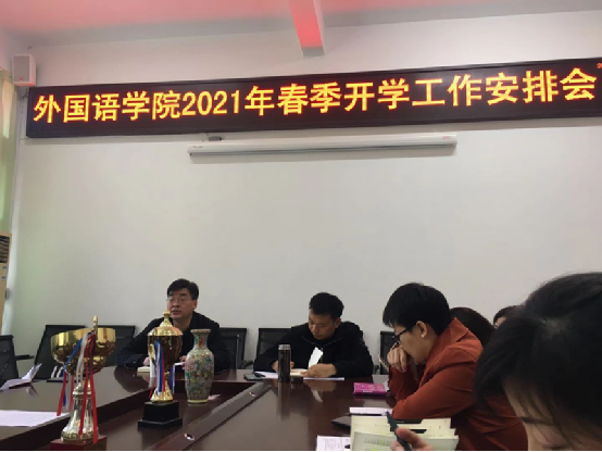 为更好地落实开学的各项工作,外国语学院于2月28日下午2:30 召开全院教职工大会,会议由外国语学院党委书记文宇主持。