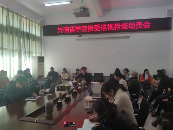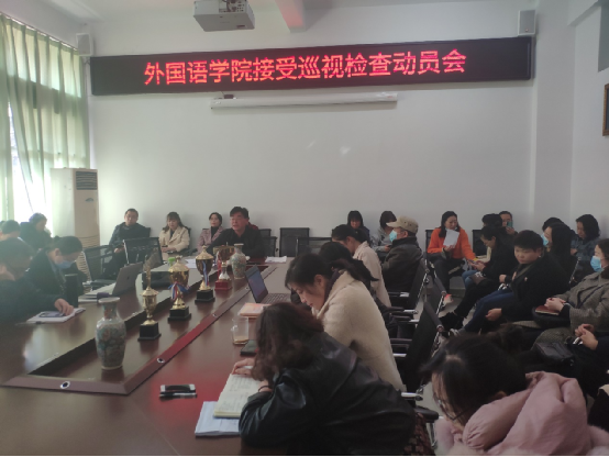 2021年3月2日下午,外国语学院在外文楼会议室召开全体教职工大会,学习传达3月1日下午学校党委扩大会精神,就省委巡视组巡视西昌学院党委进行动员。会议由外国语学院党委书记文宇主持。