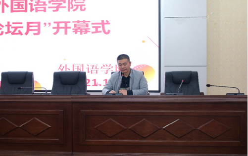 为给外国语学院师生间搭建一个增进了解“学术科研”的优质平台,使学院内部的科研信息、观点、思想得到充分交流,促进外语学科研究前沿知识共荣互通,更好地促进合作与学术创新,营造浓厚的科研学术氛围,外国学院启动了首届“学术科研论坛月”系列活动。外国语学院于2021年11月4日15:30在第五教学楼国际学术报告厅举办了外国语学院首届“学术科研论坛月”开幕式。
