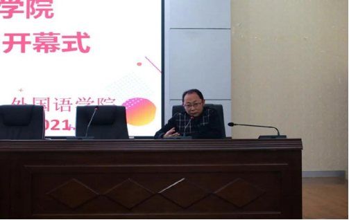 外国语学院教务科科长陈怀志同志代外国语学院副院长陈红梅同志致开幕辞。陈红梅副院长就外国语学院所取得的进步与发展表示祝贺,并指出我院在获得优异成绩的同时仍存在短板需要解决,知不足方可上进,鼓励师生以“共荣互通,创新发展”的宗旨营造浓厚的学术科研氛围,加快学科建设。