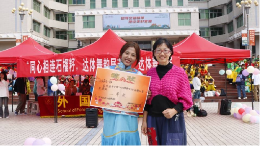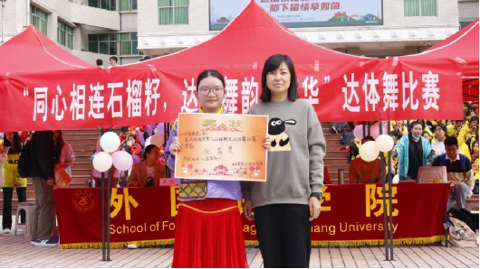 为促进民族文化交流,增强民族自豪感,铸牢中华民族共同体意识,我院于10月25日在书田广场举办“同心相连石榴籽,达体舞韵展芳华”达体舞比赛,参与本次活动的嘉宾有外国语学院专职组织员杨艳、教务科科长黄莺、任课老师曹建明、蒋明荣。