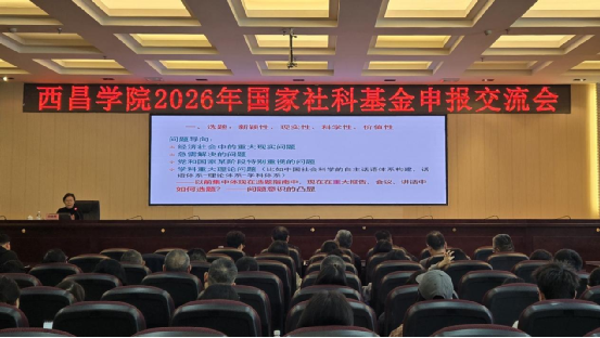 为精准把握2026年度国家社科基金申报政策导向与撰写要求,切实提升项目申报质量与立项成功率,2025年11月7日下午,西昌学院举办2026年度国家社科基金申报交流会,本次交流会特邀中共四川省委党校马克思主义学院吴晓燕教授担任主讲嘉宾,为参会教师提供专业指导;旅游与城乡规划学院、马克思主义学院、体育学院、外国语学院、教师教育学院、图书馆等单位的教师齐聚一堂,围绕国家社科基金申报关键环节展开深度学习与交流。此次交流会由外国语学院院长陈红梅主持。