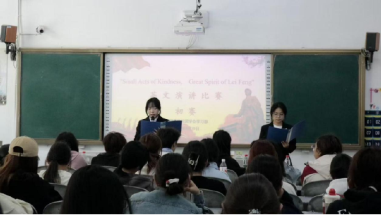 为激发同学们英语学习兴趣、提升口语表达能力,弘扬雷锋精神、传承中华优秀传统文化,我院于2026年3月19日在弘毅楼102教室举办“Small Acts of Kindness, Great Spirit of Lei Feng”英文演讲比赛初赛。