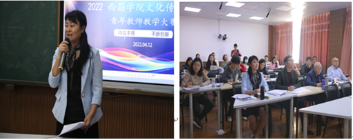 为提升青年教师的教学能力,培养教学素养,文化传媒学院于2022年4月12日开展了青年教师教学竞赛,此次参赛老师为40岁以下的老师,共11位,参赛人数比例为我院青年教师的80%。凉山州教科所中小学室主任、四川省特级教师、正高级教师王晓荣与西昌市融媒体中心副台长张金担任校外专家评委,本次比赛的评委老师还有:文化传媒学院党委副书记谭时康、文化传媒学院副院长张富翠教授、文化传媒学院银龄教师李顺刚教授、教务科科长史良玉、花志红教授、戴学忠副教授、杨朝晖副教授。本次比赛由副院长张富翠教授主持;贺惠英、付建红任监督员,负责对比赛全程及成绩查验进行监督;韩京佑、邓世琼为工作人员。我院当天没课的教师都积极主动地来观摩了此次精彩的比赛。