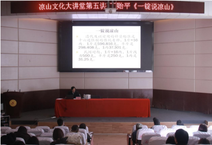 12月12日,在敏行楼学术报告厅举办了“凉山文化大讲堂”系列讲座的第五讲“一锭说凉山”。本场讲座由凉山州广播电视台主任编辑、文化传媒学院客座教授丁贻平主讲,文化传媒学院院长张富翠教授主持。西昌学院党委副书记、党委常委陈小虎教授出席了讲座。