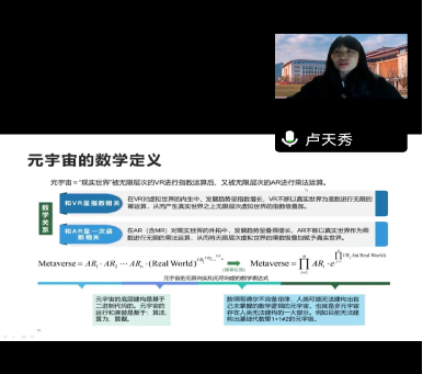 2022年12月6日晚7点,因为疫情原因,四川轻化工大学数学与统计学院副院长卢天秀教授采用线上方式,为我院数学专业300余师生做了关于“元宇宙”的专业学术报告。