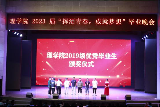 晚会由余力老师主持,余力老师介绍了到场的院领导并对参会人员表示热烈的欢迎。黄信书记致辞,希望同学们能保持理想、坚持学习、感恩母校、未来可期,并预祝此次理学院2023届“挥洒青春,成就梦想”毕业晚会取得圆满成功。晚会表演由一段暖场采访视频拉开帷幕,黄信书记、李璐老师都对2019级同学们的优异成绩做出了充分的肯定;毕业生们在采访中回忆了在西院四年的青春年华,也祝愿理学院的发展越来越好;师弟师妹们也在采访中为2019级毕业生们送上最真挚的祝福,希望他们前程似锦。随后,由江文世书记为优秀毕业生代表颁奖。毕业晚会表演正式开始,同学们青春活力的舞姿、优美动人的歌声都在向我们展示着理学院学子们的青春洋溢。晚会中途,还穿插了激动人心的抽奖环节,获得幸运奖品的同学们都送上了自己对毕业生们最真诚的祝福。最后,晚会在一首《再见》中落下帷幕,回望大学校园的青葱岁月,忘不了理学院老师的恩情和同学间的友情。