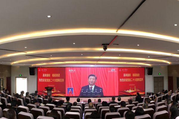 10月16日,中国共产党第二十次全国代表大会在北京人民大会堂隆重开幕。我校高度关注二十大的召开,组织师生在安宁校区、邛海校区分3个主会场、123个分会场集中收看了大会直播。全体校领导、副处级以上干部、各民主党派和师生代表在安宁校区三个主会场,集中收看了开幕会直播盛况;部分师生在教室、办公室、学生宿舍等地通过电视、网络、广播等多种方式收听收看, 认真聆听学习习近平同志代表十九届中央委员会所作的报告,认真学习领会大会精神。