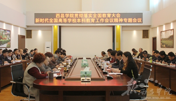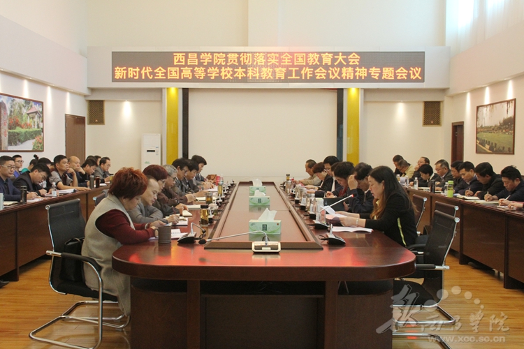 为进一步落实省委、省教育厅相关文件要求,切实统一思想行动,进一步推动深化学校本科教育教学改革,提高应用型人才培养质量。我校于10月19日在信息楼会议室召开贯彻落实全国教育大会、新时代全国高等学校本科教育工作会议精神专题会议。西昌学院院长贺盛瑜,副院长陈小虎、胡金朝、曲木伍各、徐静及学校各部门领导干部、本科教育审核评估评建组长参加会议。会议由胡金朝同志主持。