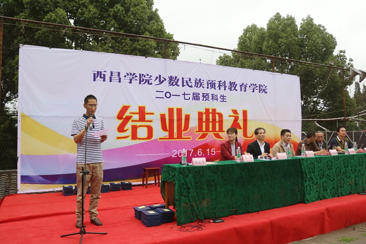 6月15日,我校2017届少数民族预科学生结业典礼在少数民族预科教育学院篮球场举行。学校党委副书记、院长彭正松,副院长曲木伍各,教务处处长胡青龙,团委书记袁颖,招就处副处长李远军,少数民族预科教育学院党总支书记马史火,院长孙正华参加了结业典礼。