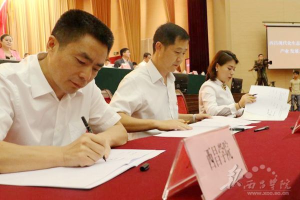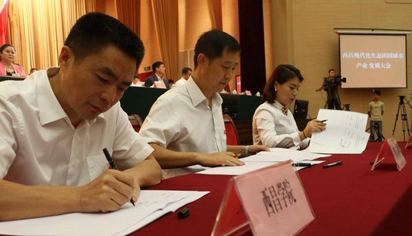 本次产业发展大会是顺应新常态、新区位正在全方位改变经济社会发展的趋势,围绕如何把握时代的“风口”,加快转型升级步伐,培育新型产业生态,实现发展动力从要素驱动向创新驱动转换,从源头上夯实西昌可持续发展的根本基础的大会。会上,西昌学院院长彭正松同志与中共西昌市委常委、宣传部部长唐军同志签定了院地合作项目战略合作框架协议。通过框架协议的签定,将我校的优势学科技术及高素质科技人才捆绑式的与当地重点发展产业结合起来,在政策上起到鼓励、引导和保障的作用,从整体上推动双方科技合作的开展。同时,集政府的政策优势、高校的学科、人才优势和企业的面向市场的优势于一体,形成优势互补的良好局面,更好地促进西昌产业发展。