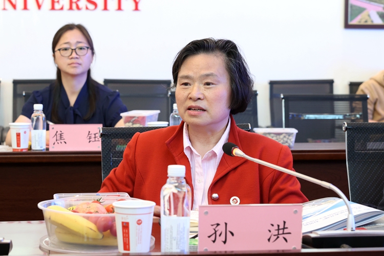 调研会上,孙洪教授作为“银龄”教师代表,分享了她到校两年来的工作情况,并就实际工作中的一些建议,向调研组作了报告。