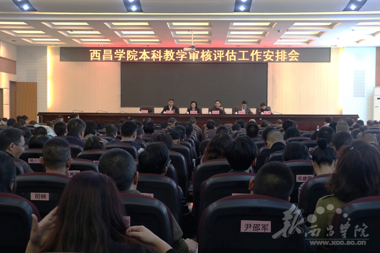 11月7日,我校本科教学审核评估工作安排会在北校区图书馆报告厅召开。西昌学院院长贺盛瑜,党委副书记杜正聪,副院长陈小虎、胡金朝、曲木伍各、徐静出席会议。学校副科级以上干部,正高职称教师参加会议。会议由杜正聪同志主持。