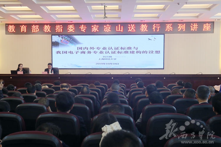 10月18日下午,教育部教指委专家凉山送教行系列讲座在我校北校区图书馆学术报告厅正式开讲。上海财经大学副校长刘兰娟教授以《国内外专业认证标准与我国电子商务专业认证标准构建的设想》为题开展了讲座。我校500余名师生代表参加了讲座。讲座由党委常委、副院长陈小虎主持。