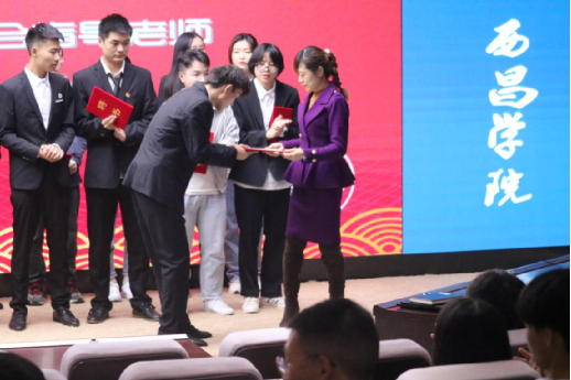 会议第三项,黎老师和向老师为我院第四届学生干部颁发聘书。