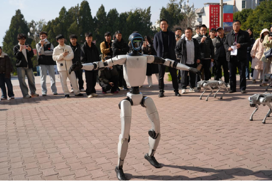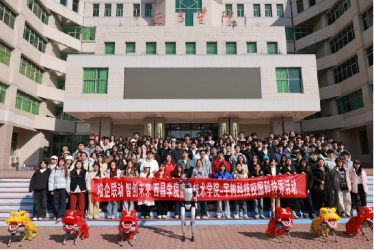 2025年12月31日14:00,在新年钟声即将敲响之际,信息技术学院与宇树科技联合举办的“校企联动,智创未来”校园科技秀活动在我校书田广场精彩呈现,以“前沿技术展示+沉浸式互动体验”的形式,为信息技术专业学子打造了一场兼具知识性与实践性的科技盛宴。