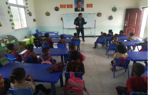新学期,合洛村布江连心幼儿园和村幼教点一下子多了5位新老师:1位副教授、4位硕士。他们是西昌学院派驻合洛村的工作队员,繁忙的驻村工作之余,利用休息时间轮流到幼儿园授课。通过普通话、识字、算术、古诗、音乐、文明礼仪、卫生习惯养成等课程和讲故事、做游戏,使小朋友们迈出了开智启蒙、全面发展的第一步。