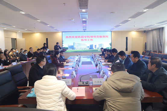 我校与西昌市人民医院召开共建附属医院推进会  为落实“省部委共建”意见关于“对接健康卫生服务需求,建立‘西昌学院医学院’,培养凉山州本土医药卫生人才”的要求,为学校填补医学学科空白、拓展办学空间、提升办学层次和社会影响力,4月7日,党委常委、副校长陈小虎、曲木伍各率队赴西昌市人民医院参加共建附属医院推进会。会议由西昌市人民医院副院长谢欢宇主持。 西昌市人民医院院长刘易其对陈小虎、曲木伍各一行表示热烈欢迎,对双方筹建、高效推进合作项目的工作人员表示感谢。刘易其重点介绍了西昌市人民医院历史沿革,医院在人才、设备、技术、学科、科教、业务等方面发展现状,及共建附属医院的目标、愿景。 曲木伍各介绍了学校发展历程、办学条件、教改成效、服务地方成效。陈小虎指出,双方要拓展共建附属医院合作项目、共建运动康复专业、共享实验实训平台、共享图书馆资源、共引共育共用高端人才平台等。 西昌市人民医院党委书记段小容提出了与西昌学院合作、促进市人民医院跨越式发展的构想,希望双方合作尽快落地落实。 会后,与会人员一同参观了西昌市人民医院临床技能培训中心、PBL教室、电教室等实习实训室。   |