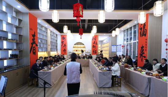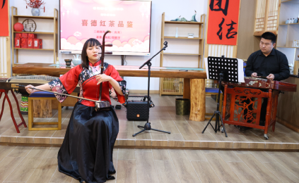 茶话会上,《春节序曲》充满浓浓新年氛围,扬琴独奏《步步高》《落花夜》、扬琴配乐《茉莉花》、长笛古筝合奏《渔舟唱晚》、二胡扬琴合奏《良宵》,让大家感受了中国民族乐器的魅力。
