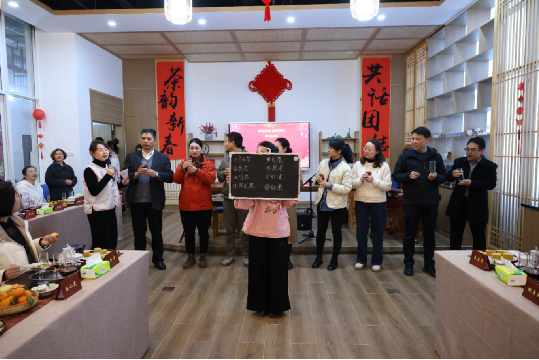 党委副书记陈小虎和老师们一起参与猜茶游戏