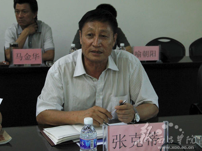 会议由学院党委张克蒂书记主持。张书记对刘建军副部长一行莅临我校检查、调研与指导工作表示欢迎,感谢上级对我校的关心与支持。同时,张书记介绍了学校的办学历史、办学指导思想、办学定位和师资队伍建设、学科结构调整等方面的情况。