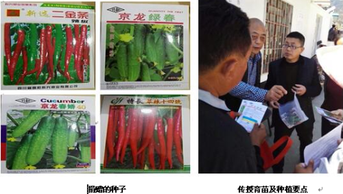 捐赠速生杨树苗 2017年3月17日,民革西昌学院支部开展了第二次帮扶行动。学院支部购买了价值1500.00元的二金条辣椒10包、华辣14号辣椒种子1包和黄瓜京龙绿春30包、京龙春娇20包种子,由支部主委郑纬、副主委曲继鹏代表民革西昌学院支部捐赠给麻棚村支部。麻棚村党支部书记沙正发、驻村第一书记曾书记代表村民接收。民革学院支部还现场召集麻棚村1、8组的贫困户代表,传授育苗及种植要点,并承诺所有产品全部回购。场面气氛热烈而友好。