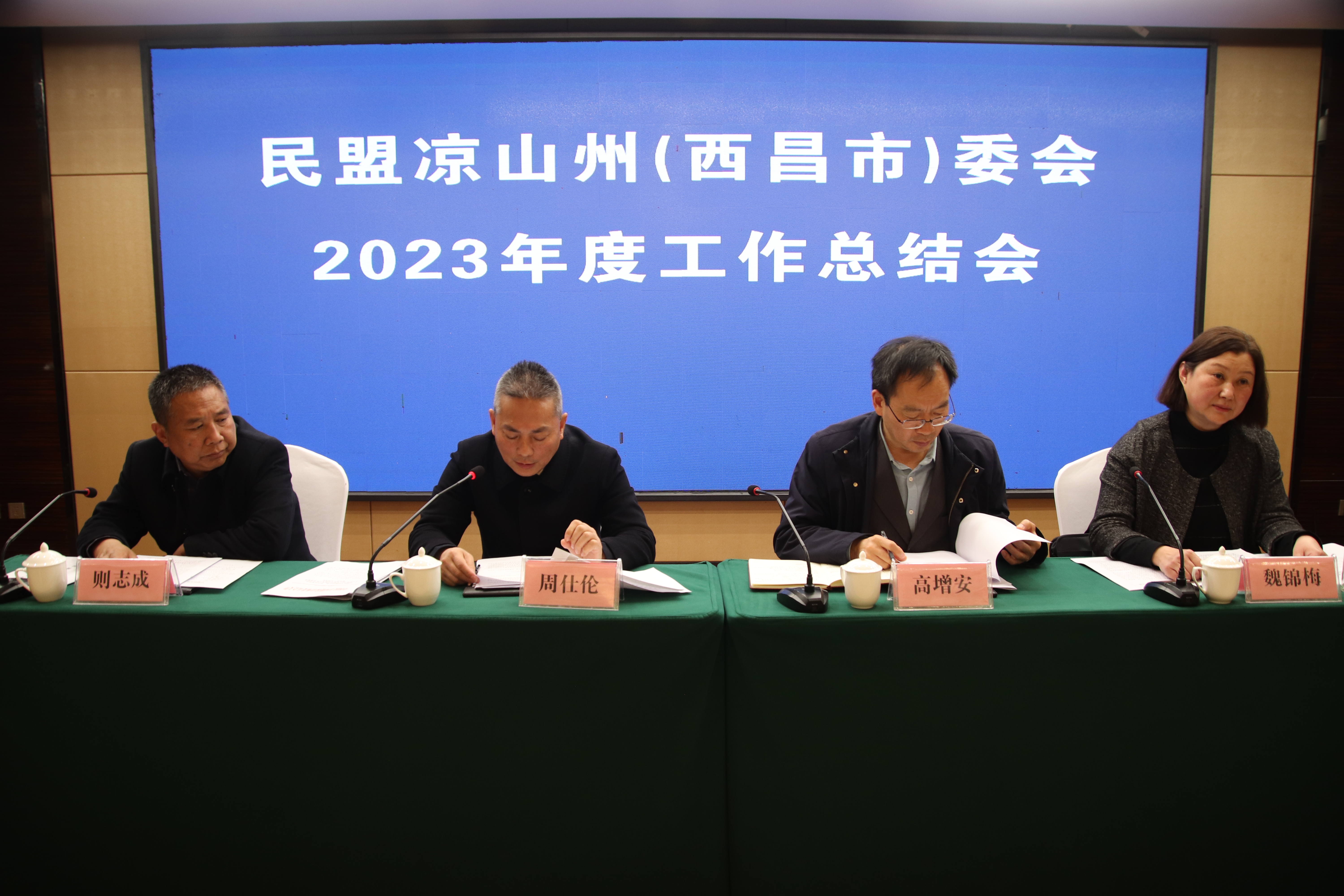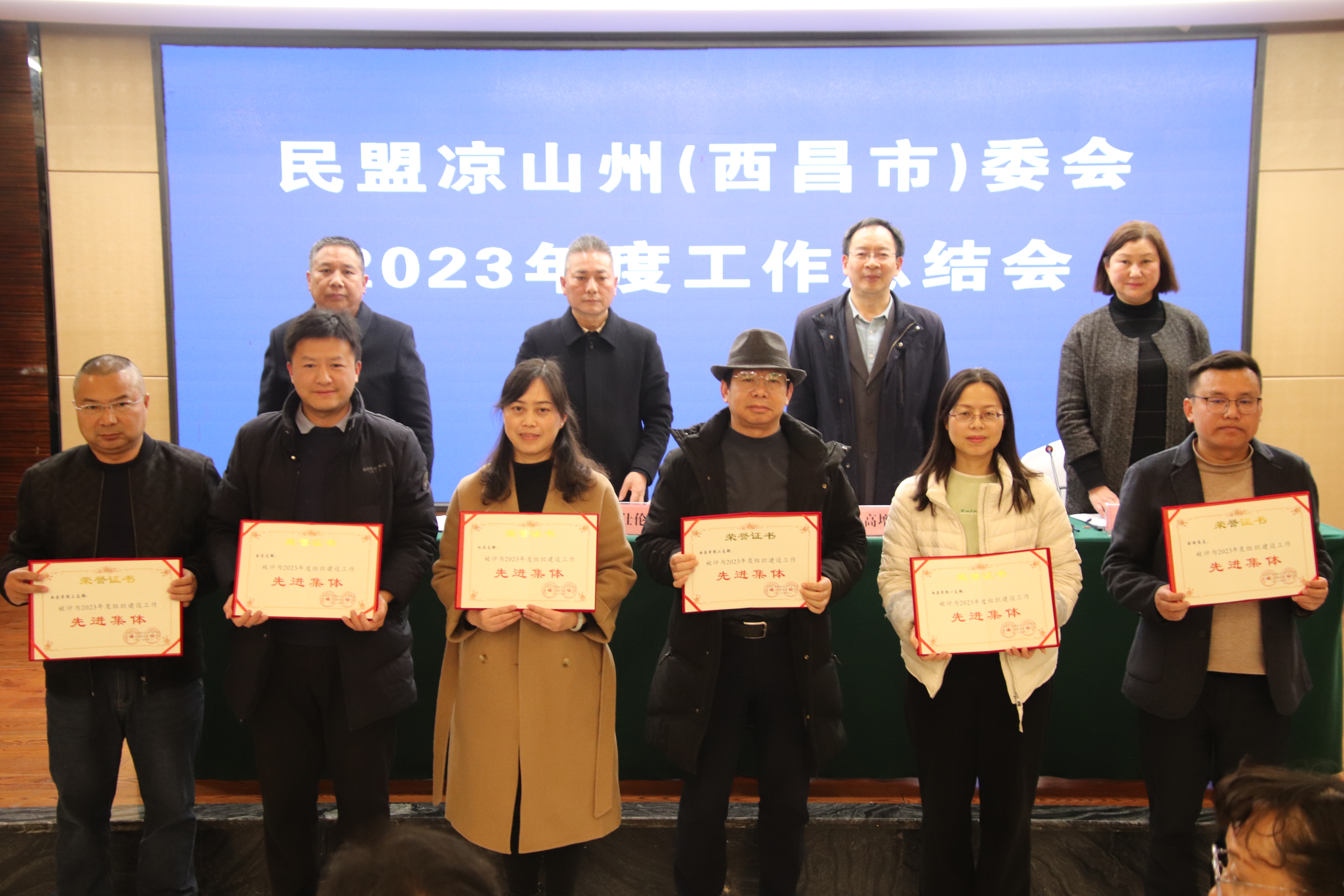 2024年1月13日下午,民盟凉山州委(西昌市委)在天季酒店召开2023年度工作总结大会,主委周仕伦主持大会并做工作总结和2023年工作部署。盟省委副主委高增安同志,中共凉山州委统战部副部长魏锦梅同志,中共西昌市委统战部常务副部长则志诚同志莅会指导。副主委杰罗拉果、罗锐、吉木阿洛参加会议并宣读表彰文件。州(市)委委员、各支部主委、盟员骨干、盟员代表等100 余人参加会议。  周仕伦从思想政治建设、建言资政、社会服务和自身建设等方面总结了凉山民盟2023等年度工作成绩,并对2024年工作进行了部署,要求全体盟员要在民盟四川省委和中共凉山州委的坚强领导下,在州委统战部的指导帮助下,切实履行参政党职能,以更加奋发有为的精神状态履职尽责、服务大局,推动民盟各项工作再上新台阶,以民盟所长推动中国式现代化凉山新篇章。  在听取2023年工作总结和2024年工作打算后,魏锦梅副部长对民盟州委2023年取得的成绩给予了充分肯定并表示祝贺,希望全体盟员要加强学习,把准政治方向,充分发挥优势,积极建言献策,在凝心聚力、服务大局上发挥更大作用。 高增安充分肯定了民盟凉山州委 2023 年所做的工作和取得的成绩,并对下一步的工作提出了殷切希望。他要求,民盟凉山州委要进一步激发盟员队伍活力,继续加强担当作为,力争为凉山建设作出更大贡献。  对获得州(市)委表彰的先进集体和先进个人进行颁奖 会上对获得盟州(市)委表彰的先进集体和先进个人进行了颁奖。民盟西昌学院基层委员会获“宣传工作先进集体”荣誉称号,一支部获“宣传工作先进集体”“参政议政工作先进集体”“组织建设工作先进集体”3项荣誉称号;二支部获“组织建设工作先进集体”“社会服务工作先进集体”2项荣誉称号;三支部获“宣传工作先进集体”“组织建设工作先进集体””2项荣誉称号。盟员亓东明、董艳珍、游潘丽、丁有为、黄芳、尔扎莫获“先进个人”荣誉称号。 |