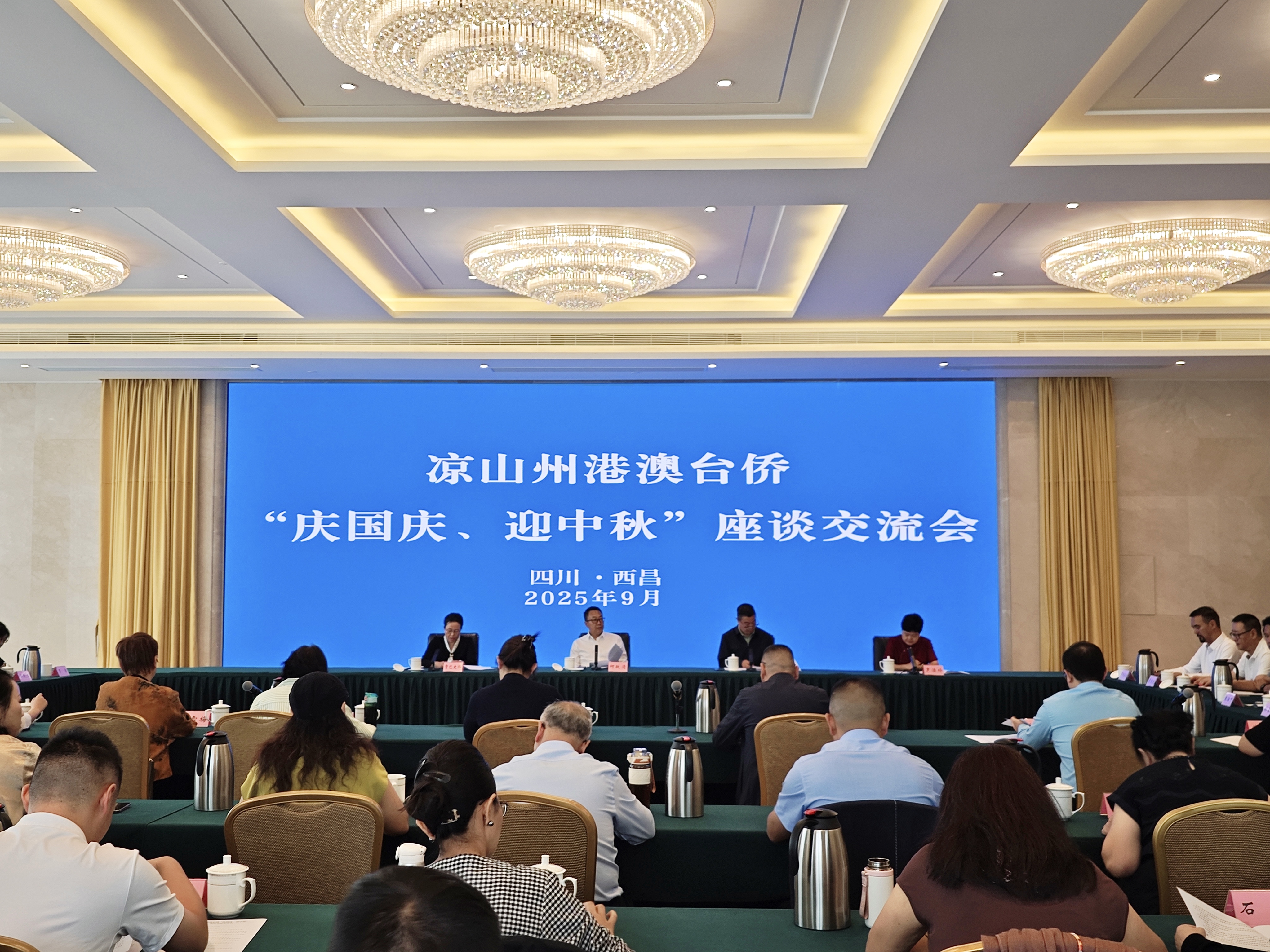 秋风送爽,丹桂飘香。在中秋佳节来临之际,为表达对在凉港澳台同胞及海外侨胞的关怀,加强与凉山地区留学归国人员的联系,凉山州港澳台侨“庆国庆、迎中秋”座谈交流会于9月29日上午在邛海宾馆国际会议中心举行。来自全市港澳台侨及留学归国人员代表近百人欢聚一堂,共庆佳节、共叙乡情、共谋发展。会议由州委统战部机关党总支书记、州侨联副主席孙强主持。州委统战部副部长、州侨联党组书记、主席何跃清,州委统战部二级调研员、州侨联党组副书记贾巴史伟,州侨联副主席、西昌市侨联主席罗洁朴出席会议。我校留联会秘书长郑心怡、会员布吉莫参加会议。