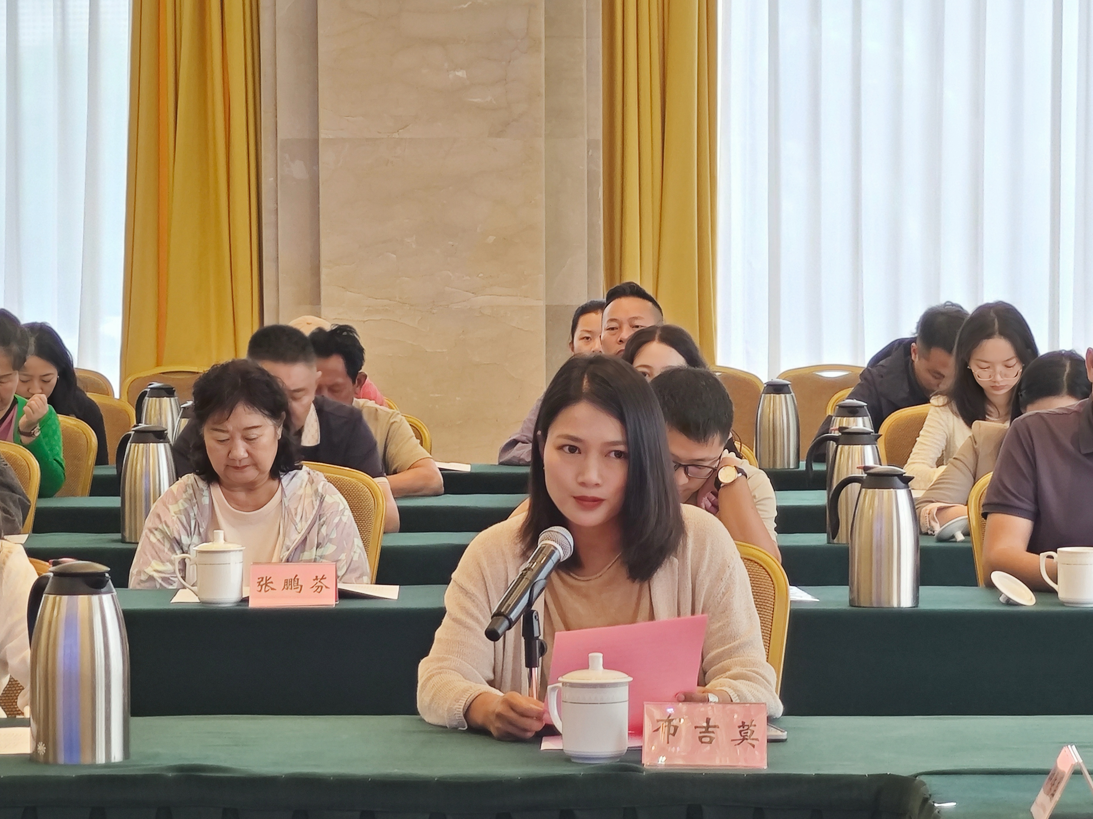 我校留联会会员、青年教师布吉莫副教授作为优秀归国人才代表在座谈会上作了专题发言。她分享了求学经历和体会:一是海外留学经历对开拓国际视野、提升科研能力的重要作用;二是归国后如何将国际前沿科研方法与本土实际需求相结合的探索经验,深入挖掘、研究并传播凉山民族文化,推动其创造性转化,助力未来文旅多元文化融合的发展;三是作为留学归国的少数民族教师,最大化发挥自身优势,进一步推动凉山地区与外界在教育、文化和科研领域的深度合作,为实现共同发展贡献智慧和力量。