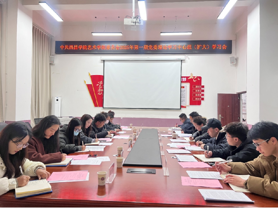 3月18日, 我院召开2025年第一期党委理论学习中心组(扩大)学习会。学院党委委员参加学习会,四川应用职业技术学院艺术与传媒学院教师党员代表、艺术学院科级干部、纪委委员、学生党支部书记列席会议。会议由艺术学院党委书记柳霞主持。