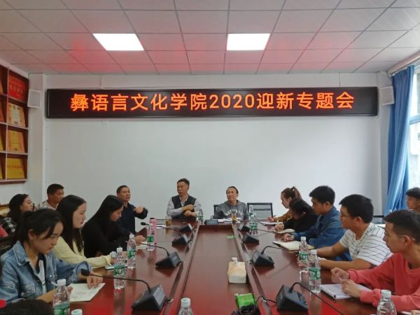 9月22日中午,彝语言文化学院2020年迎新工作专题会议在彝学楼会议室召开,会议研讨部署了迎接2020级新生入学相关工作。彝语言文化学院党委吉牛拉惹书记、蒋中国副书记、党委委员学生科科长孙子呷呷、办公室负责人胡波、2020级辅导员巴且拉达老师、学院学生会主席团成员和各部部长出席会议。会议由学生科科长孙子呷呷教授主持。