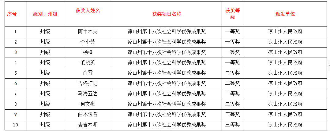 彝语言文化学院教师获2022年度凉山州第十八次社会科学优秀成果奖名单