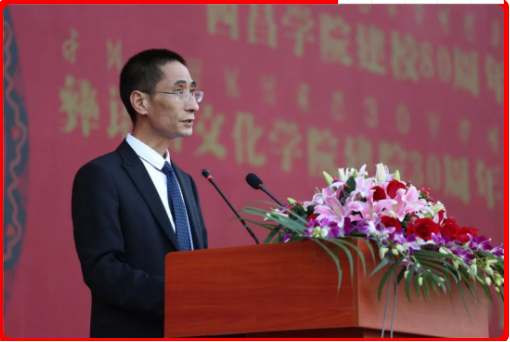 四川省人民政府教育督导委员会沈成军督学致辞,他谈到,彝语言文化学院扎根凉山办学30年,是学校的办学特色,也为地方发展培养了一大批优秀人才,取得了丰硕的办学成果。为凉山脱贫奔康,为彝区的经济跨越发展做出了巨大贡献!希望彝语言文化学院以建院30周年为起点,坚持党的教育方针,进一步深化教育教学改革,总结和弘扬彝族优秀传统文化,为凉山彝区培养更多优秀人才。衷心祝愿彝语言文化学院明天更加美好!
