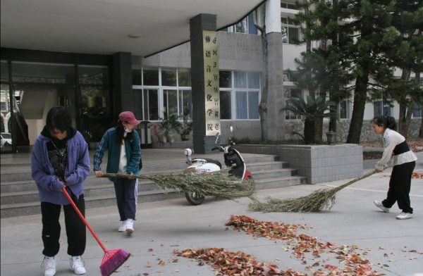 彝语言文化学院开展2021年春季新学期校园环境卫生整治活动
