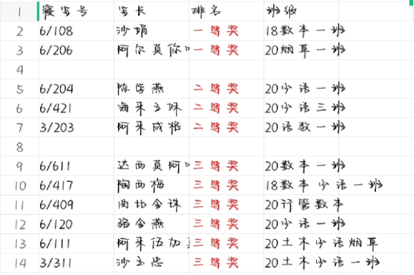 以下是此次叠军被活动的获奖寝室,恭喜以下11个表现优异的寝室,同时也感谢各参与寝室的热情与配合。