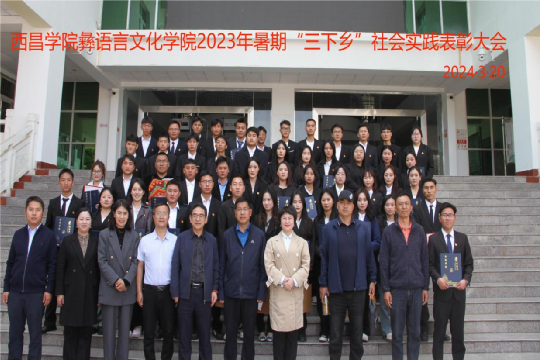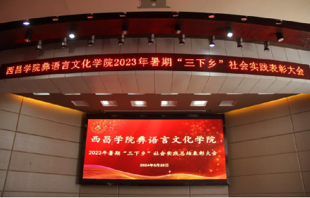 为了总结经验,树立典型,鼓励先进,推动第一课堂与第二课堂融合,坚持“专业特色优势+”为主线,努力建设实践育人体系,彝语言文化学院于2024年3月20日在邛海校区学术报告厅举行2023年暑期“三下乡”社会实践表彰大会。参加本次表彰大会的领导有彝语言文化学院党委书记杨春晨、党委副书记、院长阿牛木支、副书记肖雪、副院长叶江玲、各科室主要负责人、教师代表、全体受表彰同学及学生代表。