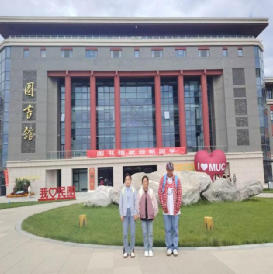 图三:吉克史格、瓦其伍洛、王其其在中央民大丰台校区图书管留影 图四:校园一角