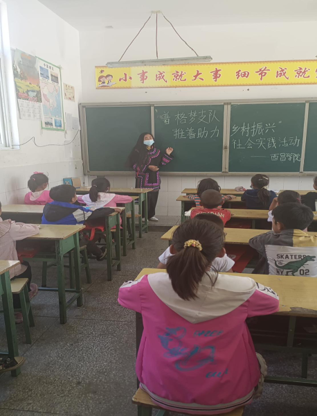 1.1.1实践背景:在暑期里,我们有更充足的时间和精力去安排并开展推普的社会实践活动。为深入贯彻习近平总书记关于教育的重要论述精神,全面落实全国语言文字会议精神,加大民族地区、农村地区国家通用语言文字推广力度,服务乡村振兴战略实施,我们彝语言文化学院创新创业协会组建团队起名为:普格县梦支队-通语立志,深入普格县乡村开展普通话推广活动,以实际行动助力乡村振兴战略的全面推进。鉴于乡村里存在多数人还未能使用普通话进行正常交流,在外出时也只会使用自己本民族的语言,与他人交流都成了障碍,导致更多的孤独与无助。这样的现象到处可见。他们还未重视学习普通话的重要性,在时代迅速发展的同时,还存在这样的社会背景,因此我们团队立志深入村里进行推普社会实践活动。