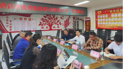 西昌市供排水集团有限责任公司副总经理张旭东、凉山州邦立检测有限责任公司总经理曾波、蓝盔环境西昌有限公司张开芹总经理和四川省地质矿产勘查开发局攀西地质队周明伟队长对学校此次走访调研表示热烈欢迎,并全面详细的介绍了企业的发展历程、基本情况及用人需求,并希望在未来人才培养、科学技术研究、知识成果转化、创新战略上开展全方位合作,搭建产学研用一体化创新平台。