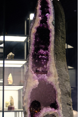 随后进入位于一层南面的矿产资源厅,该厅主要展示矿产、矿物、宝玉石的种类及其利用,揭示它们与人类生活生产的关系。在周俊烈和王偲瑞两位老师的带领下,学生参观了由石到铜,再由铜到铁的时代变迁。在老师们的讲解下,学生结合过往所学知识,对矿石的形成与发展有了更进一步的理解。