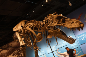 恐龙揭秘厅中展出来自全球的恐龙化石,学生通过参观厅内的恐龙骨骼、模型、模拟场景等可以大致了解恐龙生前的形态和模样,构建出恐龙时代的大致情境。