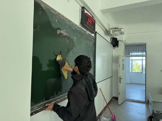 活动开展时,全体同学踊跃参与、通力协作。有人专门拿起扫帚清扫落叶杂物,有人细心擦拭栏杆与橱窗,还有人耐心整理书架杂物,将各类物资摆放得整齐划一。尽管任务繁重、体力消耗较大,但大家毫无怨言,干劲满满,确保每一个区域都清理到位。经过一番奋战,场地焕然一新,整洁敞亮,为后续活动开展提供了清爽舒适的环境,也充分展现了青年学子乐于奉献、积极向上的良好风貌。